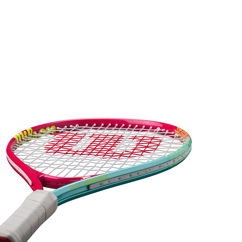Wilson's Intrigue JR 21 for junior girls features a fun, youthful design with bright, lively colors. It's a lightweight and easy-to-handle tennis racket with performance-ready playability that's perfect for beginners. The AirLite Alloy aluminum frame provides lightweight durability with impressive strength. Frame technologies optimized for beginners make this racket stable, powerful, easy to maneuver and forgiving, so young players can experience what successful shots feel like. This pre-strung 21-inch racket comes tuned and ready to play. Recommended for players aged 5-6.