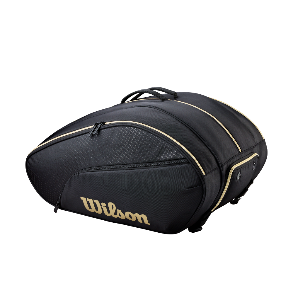Elevate your on-court game with the Wilson Defy V1 Padel Bag in striking black with gold accents — the perfect blend of style, protection, and organisation for players who train and compete regularly.