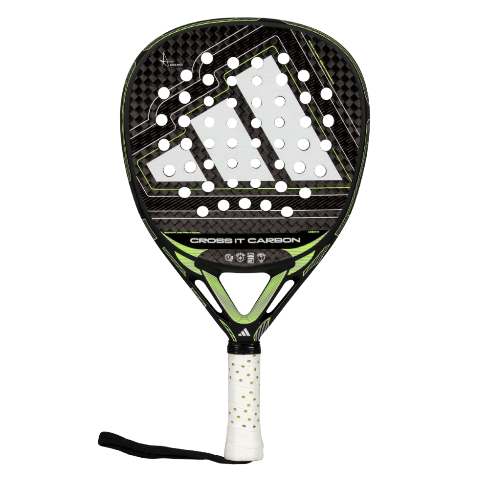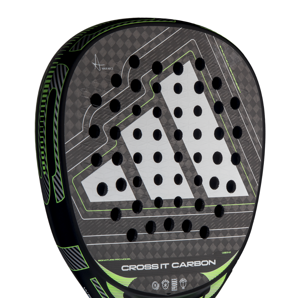 The adidas Cross It Carbon 2026 padel racket delivers high maneuverability and powerful performance thanks to Dynamic Air Flow, Extra Power Grip, and the 11 Thirteen hole construction. Its Soft Performance EVA and 6K Carbon surface offer exceptional comfort, control, and durability, complemented by a Diamond Oversize shape designed for high-level players seeking explosive offensive potential.