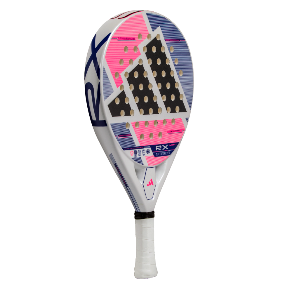 The Adidas RX Series Light is the lightweight option in the RX Series range. This racket offers excellent handling due to its reduced weight, complemented by the balance provided by the combination of EVA Soft Performance foam and fibreglass. The perimeter reinforcement, Structural Reinforcement, and Structural Power—a fibre insert in the heart—enhance the racket's rigidity. As a result, it generates power in strikes more easily.